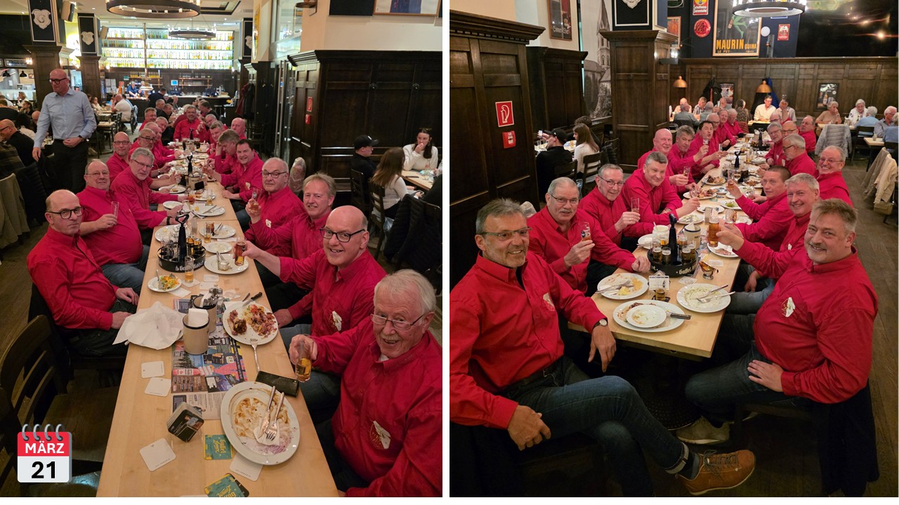 Schon lange hegten die Männer den Wunsch, einmal bei Björn Heusers Mitsingkonzert dabei zu sein. Am 21. März war es endlich so weit. Ralf (Shorty) Zimmermann hatte 20 Plätze im „Gaffel am Dom“ in Köln reservieren lassen.