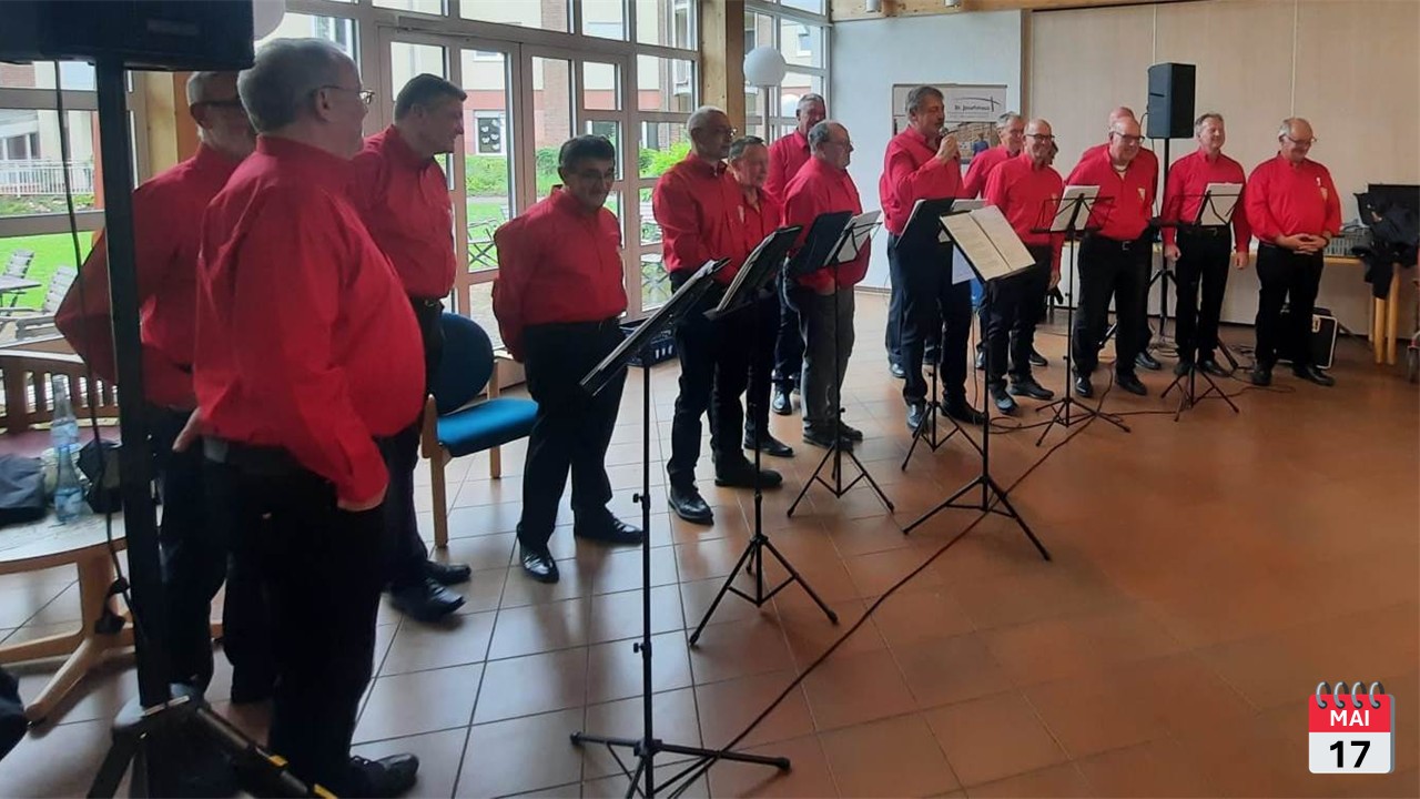 Zwei Aufrtitte an einem Tag waren am 17. Mai 2026 zu bewältigen. Um 14.30 Uhr reisten die Sänger zum St. Josefshaus in Hausen, wo man den Heimgästen einen gemütlichen Nachmittag bescherte.