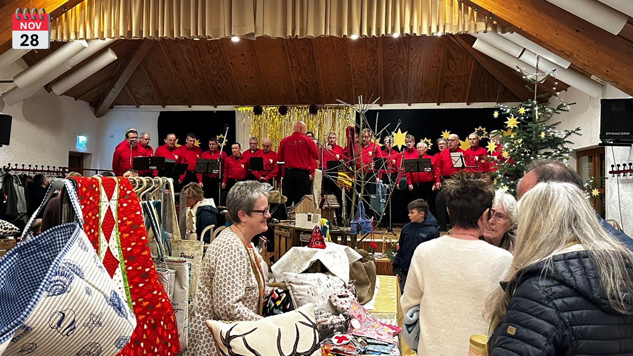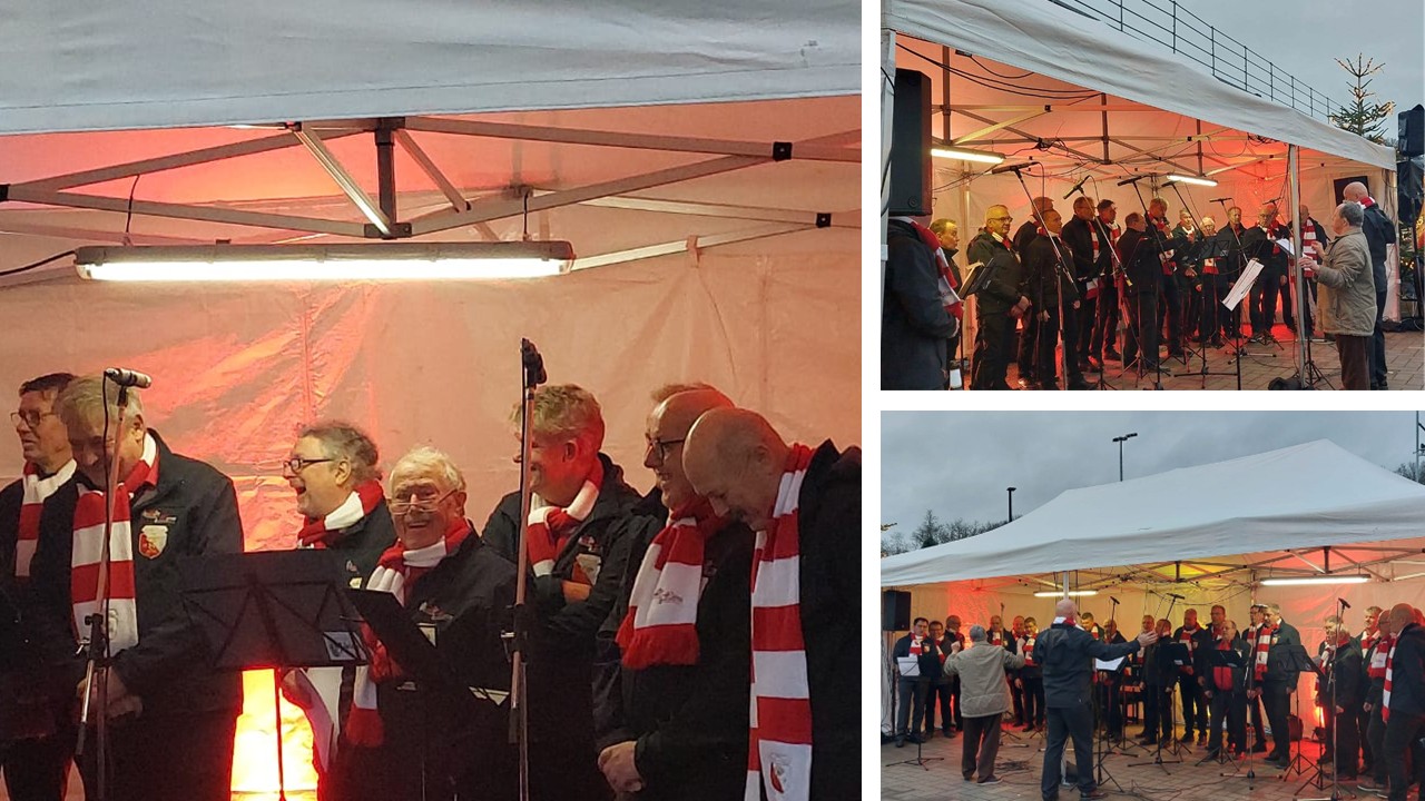 Nur zwei Wochen später standen die Sänger bereits mit ihrem Weihnachtsprogramm auf der Bühne. Die Premiere war beim Basar der Aktionsgruppe Kinder in Not e.V. in Rahms.